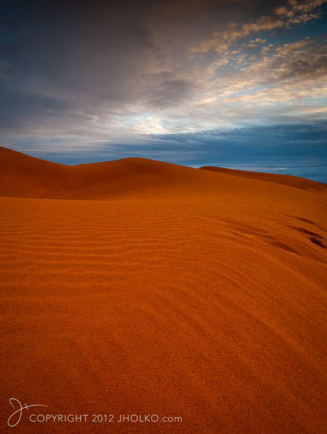 The other major photographic obstacle is that the Sandhills are a fairly popular tourist destination so the majority of the dunes are literally covered in footprints. Finding a bit of pristine sand involves some fairly arduous hiking into the dunes; being careful not to walk into a potential photograph. Its very similar to my experiences of landscape photography in the snow. In some instances the addition of a human element such as a footprint can really help (with things such as scale); but generally I try to avoid showing the hand or rather foot of man in my landscape photography.