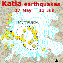 The Modern Survival Blog is reporting increased earthquake activity at Katla in the last few days. Hard to know what to make of this as there have been no reported earthquakes on RSOE in the Iceland area and they are usually one of the first to report.