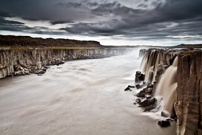 I was fortunate enough to visit both Dettifoss and Selfoss twice during my time in Iceland last year. On both occasions I was blessed with wonderful and interesting light. The purpose of dual visits to these falls was to shoot them from both sides as there is no bridge near by to cross. Its a long drive along a horrible dirt road to get to the other side. I must admit that I was so tired from the long arduous hours of shooting under the midnight sun for days and days on end that I have no actual memory of taking this photograph – I must have been on auto pilot by this point in my trip. It was one of around 50 frames I shot from this side of Selfoss. Regardless I am extremely pleased with the result. The long exposure has softened the water in contrast to the rocks and caught the incoming storm clouds streaking across the sky. For me this photograph captures some of the essence of Iceland. As I have blogged about already – I cant wait to go back. In fact, plans are afoot for a trip in June/July 2012 after Antarctica. A high resolution version of this photograph is also on my Portfolio website at www.jholko.com