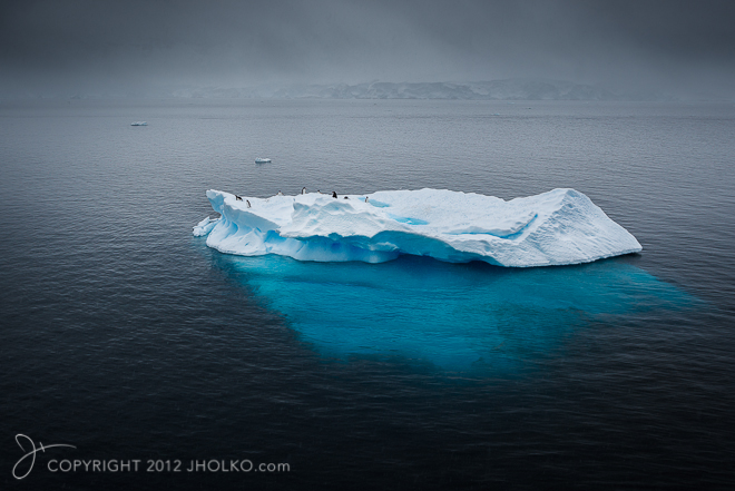 During my 2011 expedition to Antarctica I wore a persistent ear-to-ear grin when out shooting, which was for most of my waking hours. Many of the bays and coves we visited were festooned with icebergs that provided limitless opportunities for photography. As a colour photographer, I place great emphasis on a complimentary pallet of colours in my images, so I was completely enthralled by the deep blues and luminous aquamarines in the ice. On more than one occasion the cry of ‘look at those blues!’ could be heard coming from either our zodiac, or another nearby. Even the frequent driving snow did little to dampen my enthusiasm for the extraordinary colours and the magical scenes around us.