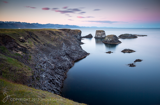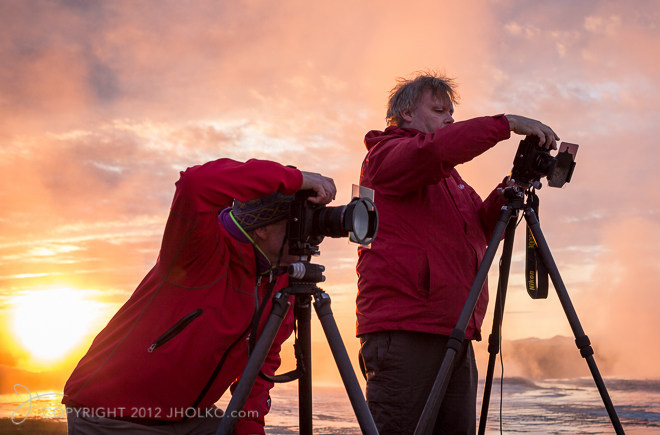 As was to be expected, Iceland served up a mixed bag of weather and light on this trip. With fickle and constantly changing arctic weather, Iceland’s climate is never stagnant or boring. We encountered the best light of the trip one early morning (2:00am) in Veiðivötn (the crater lake area) where a fog was hanging over the black volcanic tephra craters. For a period of around 30 minutes the light was magical as the rising sun slowly burned off the fog, revealing a wonderful play of light (those photographs will come later). We also had beautifully soft light on the Snaefaelsness Peninsula late in the evening, around midnight, and a fiery sunrise at the geothermal Hveravellir. This was a nice contrast for me because my last visit to Hveravellir was under overcast skies in windy conditions.