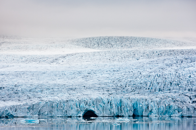 This particular photograph is my personal favorite from the glacier and was taken several years ago as I drove toward the lagoon from Reykjavik. A fog was descending across the glacier and I pulled the 4 wheel drive over to the side of the road where I took this image with the 70-200mm F2.8L IS lens at the 200mm end. I am hopeful that we will be able to get up to the glacier in a few weeks time during our winter workshops for some ice-cave photography.