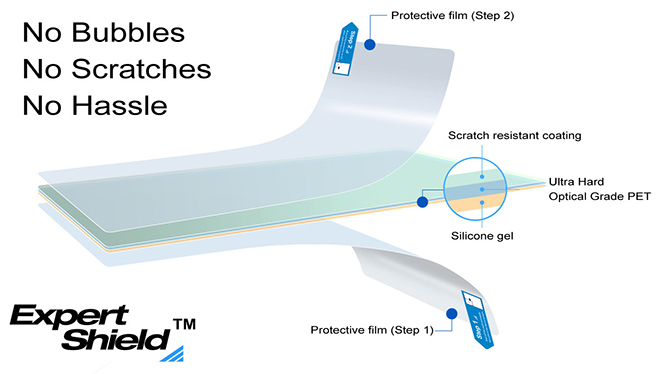 The above steps are perhaps best demonstrated by video and there are a number of different You Tube videos online that accurately demonstrate the process if you do a search. The real key to a great clean installation is to ensure the screen surface is completely free of contaminants. I recommend cleaning your screen with a lens cleaning solution and not just a micro-fibre cloth. This will be sure to remove any residue that a cloth might simply smear around. Be sure to work in a clean dust free environment. A bathroom where there has recently been steam from a shower is an excellent place to do a Screen Shield installation as the steam will have settled any dust in the air. Take your time to properly prepare your work area and screen before you start the installation and you will get a great clean result.