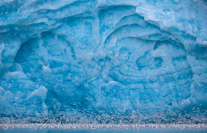 Greenland and Svalbard are fascinating locations to visit and photograph and we were fortunate to encounter and experience some extraordinary sites – perhaps the most spectacular of which was a huge iceberg collapse on the second expedition which was captured on film by many of the expedition participants. During our time in the Arctic we also witnessed several huge glacial calvings whilst photographing from zodiac and a plethora of incredible icebergs. Many of the larger icebergs we encountered contained water ice fractures – crevices that have subsequently filled with water and re-frozen. These lines are an iridescent blue and run like lightning bolts through the ice. This is a phenomena I have not experienced before outside of the Arctic and I will look closely this November when I am in Antarctica to see if I can find any examples in the southern polar region.