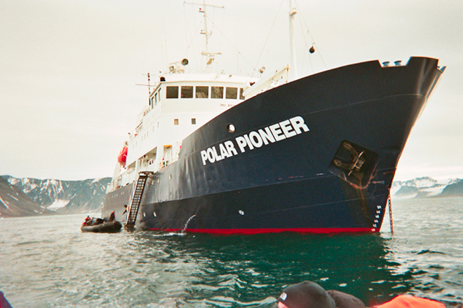 One of the more obscure attractions to a Polar Expedition is the optional and rather intimidating Polar Plunge for those who are feeling brave. It takes some conviction (one could argue lack of brain power) to jump into ice filled 3º celsius Arctic waters in the name of joining an elite society of ‘polar plungers’. I admit, I bailed on the opportunity to join this club on the first expedition this year, but had my arm twisted on the second trip and was subsequently convinced that it was a good idea to jump off the fourth deck of Polar Pioneer for the video camera. For posterity here it is – shot on the RED Epic Cinema Camera at 350 frames per second. And yes, that water was every bit as cold as it looks. Just click on the image to view the video on Vimeo.