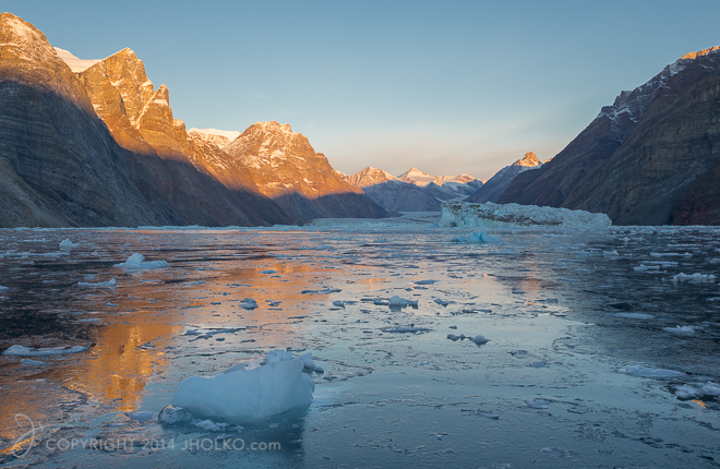 In late August 2014 I led a ship based polar photography expedition from Isafjord in the north of Iceland to the remote east coast of Greenland and west coast of Svalbard – The Jewels of the Arctic. During this expedition we sailed across the Denmark Strait from Iceland and explored and photographed the wild and remote fjords of Greenland and stunning glacial landscapes of Svalbard. We saw and photographed giant icebergs, precipitous mountains that plunge hundreds of metres into the sea, majestic wildlife and much more. We encountered Arctic pack ice and spent many hours photographing from ship, shore and zodiac under the midnight Arctic sun.