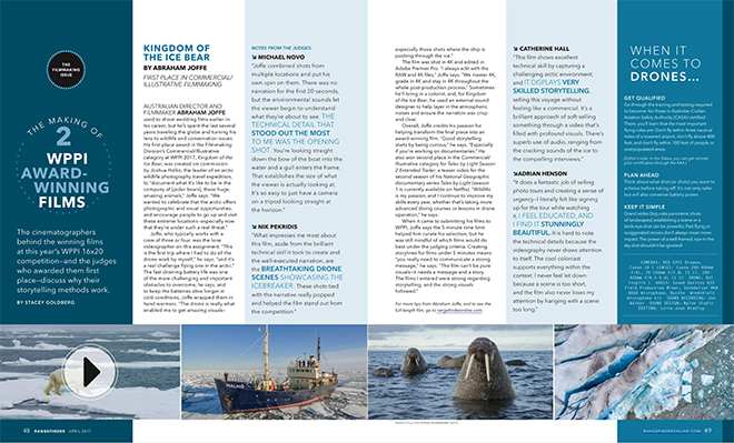 Rangefinder magazine has just published a short article on the judges thoughts and notes on the short film Kingdom of the Ice Bear (watch the video) that took out First Place at this years WPPI awards in the Commercial / Illustrative category.