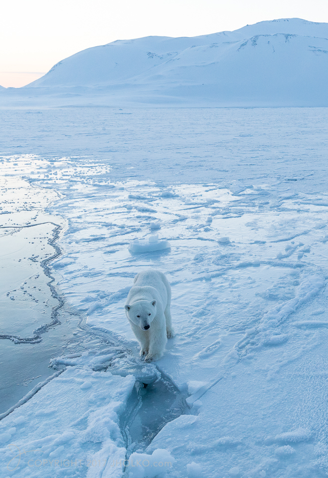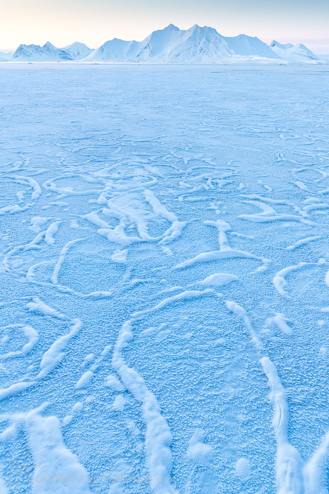 In late March 2017 I lead a new ship based expedition to Svalbard in Winter to photograph the wildlife and arctic landscapes of this remote archipelago in a winter setting. The primary reason for choosing late March was at this time of the year (and at this latitude of nearly 80º North) the sun is very low in the sky all day and thus there is hours of golden light available for photography. Dawn and Twilight light at this time of year typically last three or more hours and even at midday the sun is still very low in the sky. This situation provides hours and hours of superb light for photography. There is also something about the quality of light in winter at this latitude that translates very well into photographs. The light is soft and ethereal and often has wonderful pink and blue pastel shades not found at other times of the year. This combination of light, snow and ice is simply unmatched in my experience.