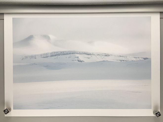 Over the last few days I have been working on a particular print that has proven to be the most difficult of my career thus far and I want to share how I finally achieved the perfect print of this photograph. It’s not a photograph that translates well in an online jpeg (unfortunately the jpeg compression destroys the tonalities), but it is simply wonderful in its final finished printed form. The photograph was taken last winter in Svalbard during my snow mobile expedition and is a layered white-on-white arctic landscape. The landscape was bathed in a very soft ethereal light when I made this photograph and contrast was extremely low. Super dense cold air hung low in the valleys and a subtle gentle fog softened the distant mountains. The darkest part of the scene was a distant rocky ridge-line, but even it was many shades above black. As a result the scene was high-key, yet it contained no harsh whites or blown out areas. Honestly, outside of getting to this remote location and the freezing temperature (around -30º Celsius) it was not a difficult photograph to make. It has however been a complete bear to process and print. There are literally hundreds of shades of different white in the photograph with extremely delicate tonalities that require just the right amount of finesse to print. Anything less than perfect results in flat areas that lack depth.