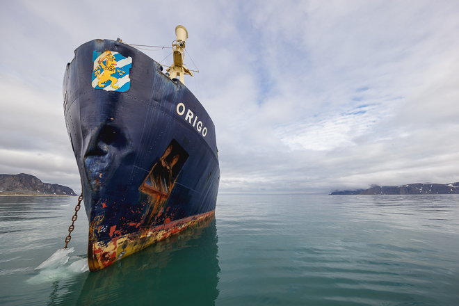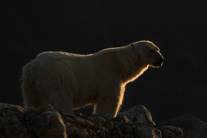 In another first for me we also photographed a polar bear feeding on a dead whale carcass that had washed ashore. Using zodiacs again we were able to get very close and position ourselves for some fantastic mountain backgrounds. We spent a couple of hours with this bear and were able to get some really unique photographs. This is one of the key benefits of small expeditions such as this; we can really spend quality time with every opportunity we encounter. And with a small group of just twelve participants there is plenty of room for everyone in the zodiacs.