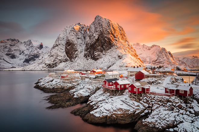 I arrived in Lofoten in Norway today to some wonderful fresh snow and cool winter temperatures. After the heat of the Australian summer it is nothing less than intoxicating for me to don a winter jacket and deeply inhale the arctic winter air. Lofoten is every bit as beautiful as I remember and I am really looking forward to getting underway on my 2018 workshop tomorrow. This photograph from the classic bridge overlook in Reine from 2016. With a little luck we should have some superb light conditions and even some Aurora Borealis.