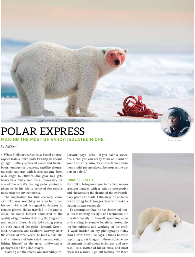 The March 2018 issue of Americas Professional Photographer magazine has just published a new interview on how I became a Professional Polar Wildlife Photographer – Polar Express, Making the most of an icy, isolated niche. You can Download the Full Interview by clicking HERE or on the Image Below