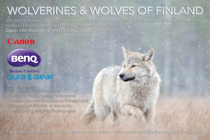 Day five of mandatory self isolation includes a photograph I made in September last year on my northern Finland workshop (Read the Trip Report) and is of a young wolf emerging from the forest in no man’s land between Finland and Russia. We were extremely fortunate to have incredible encounters with this pack of young wolves over several days. Using hides positioned with special permission in no mans land between Finland and Russia the wolves put on a fantastic show for us over a period of several days. Most of the activity occurred late in the day / early evening so we tended to focus our efforts at this time of day.