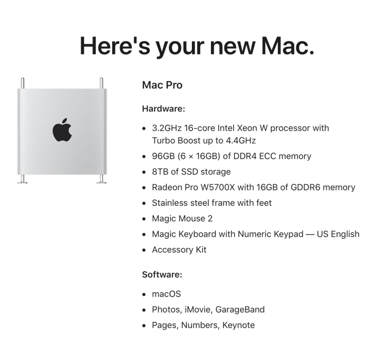 All joking aside, I would enjoy some insight into why you made the choices you did. The RAM and SSD sizes seem like fun overkill, but they make sense. The CPU is a little puzzling to me. 16 cores (making 32 virtual cores) is a lot, especially for a Xeon CPU. I know the new Mac Towers only offer Xeons, so I’d be curious about the real-world performance and how whatever software you are using manages to scale up to be able to take advantage of the far-above average power available.