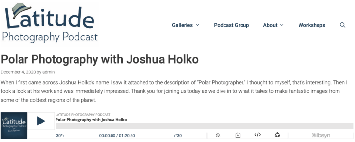Brent Bergherm over at Latitude Photography has just published a new Podcast episode on my Polar Photography. We recorded the podcast earlier this year, but with COVID and all the other world issues at play it took a little while to get published. The podcast covers how I got started as a specialist Polar Photographer, preparing for the shoot, the Falkland Islands and what makes them special, Souther Georgia Island and a lot more. Listen to the Podcast.