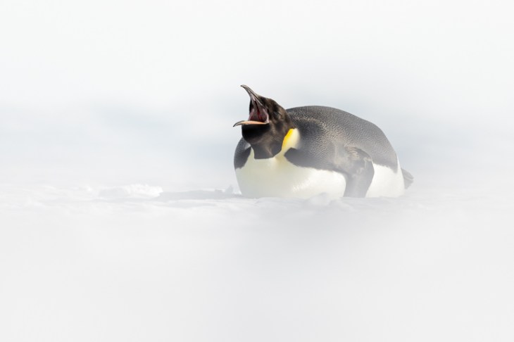 I want to kick off my photo of the month series for 2021 with an image I shot in January of 2020 of an Emperor Penguin on the sea ice in the Ross Sea Region of Antarctica (Read the Trip Report). This was one of very few Emperor Penguins we encountered on this expedition and the only Emperor we were actually able to photograph on the ice at eye level. Although we saw quite a few during the expedition almost all of them were either in the water or were at too great a distance to photograph. In this example, we landed on the frozen sea ice with our zodiacs for evening drinks and serendipity stepped in and provided a wonderful photographic opportunity. The Emperor penguin, curious about all the people on the ice, jumped out of the water onto the ice and proceeded to provide us a wonderful half hour session on the ice.