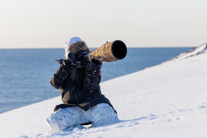 Participants shot both Sony and Nikon so all three marques were well represented during the expedition (with myself shooting Canon). Cameras included the Sony A1, Sony A7RIV, Nikon D6, Nikon D750, and D850, and Nikon Z9. We photographed with lenses ranging from 11-24mm all the way to 400mm. There were no camera failures or issues despite the freezing cold and driving snow. The current generation of mirrorless cameras does seem much more reliable in the cold than early iterations.