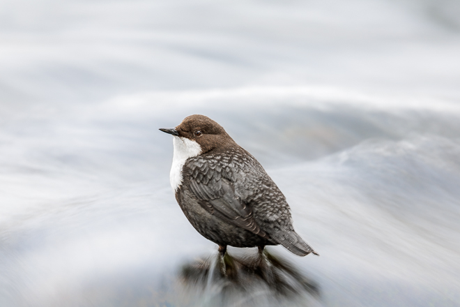 On our last day, we took the opportunity to photograph Dippers nearby to our accommodation before we wrapped up our winter workshop with onward flights home. This particular image of a dipper was captured at just 1/5th of a second in order to blur the water around the small bird.