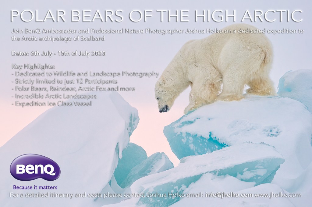 If you are interested in photographing Polar Bears in their natural environment – on the pack ice, then I will be offering two expeditions in 2023. Details included below. Just drop me an email for more information or to register your interest. See you in Svalbard in a couple of days.