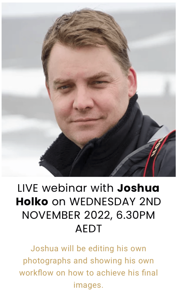 On Wednesday the 2nd of November this year (2022) at 6:30pm Australian Eastern Standard Time, I will be giving my fourth free live webinar with BenQ. The topic of this webinar will be how to post-produce photographs with ice and snow for maximum tone and contrast and emotional impact. I will be taking attendees through my full workflow for producing photographs with maximum texture and tone with ice and snow and showing how to get the very best from your RAW files. I will also be talking a little about why color calibration and accuracy is important. There will also be a live Question and Answer session to address all your queries on post-production relating to ice and snow. The webinar is free and is made possible through the generous support of BenQ. The webinar will be held in ZOOM and Registration is mandatory. You can register HERE. BenQ are going to record the episode and make it available for those of you in different time-zones.