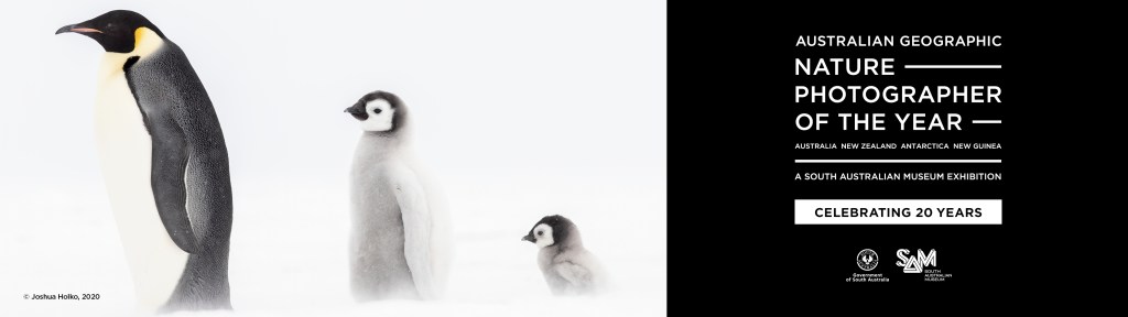 The ANZANG/Australian Geographic Nature Photography Competition is celebrating its 20th anniversary. To celebrate this, ANZANG has curated a collection of hero images as a ‘Best of 20 Years’ collection. The images are now on display on digital screens across Australia. These locations range from domestic and international airports to shopping malls, office buildings, and complexes, all with a high flow of pedestrian traffic. I am pleased to report that one of my photographs of Emperor Penguins ‘Family Walk’ is included in the collection. Look out for it in your travels.