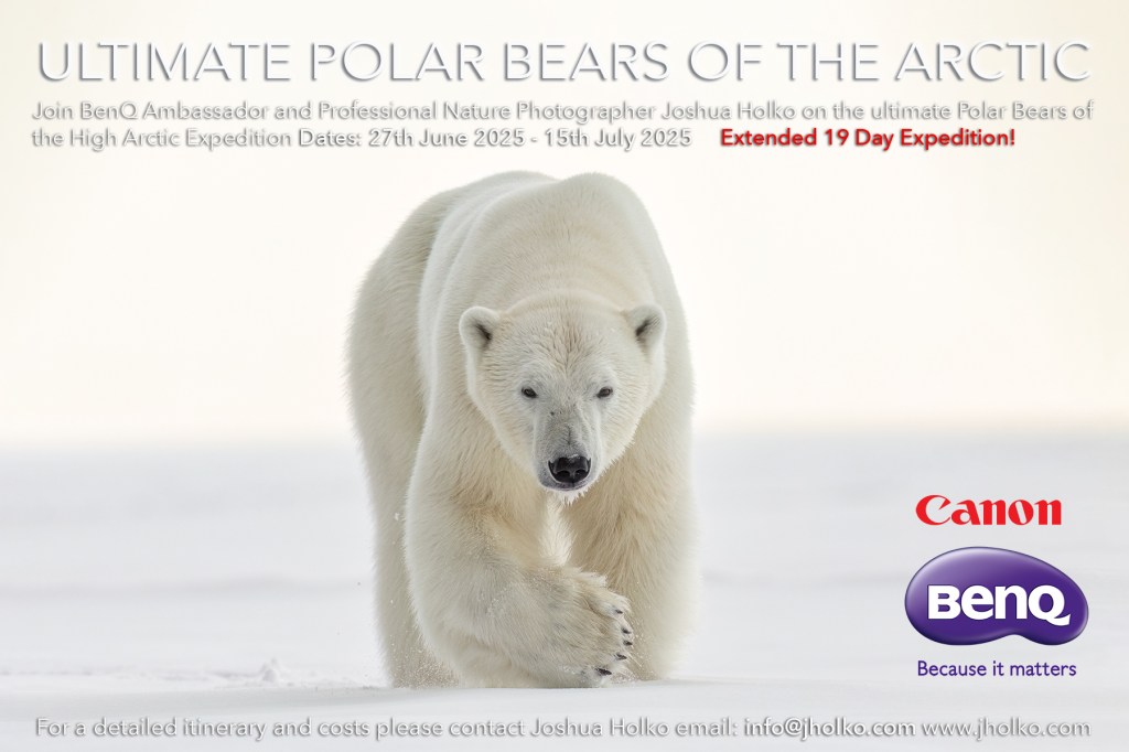Today, I am incredibly excited to open the (already almost sold out) bookings for an all-new 19-day / 18-night dedicated photographic expedition for Polar Bears in the high Arctic north of Svalbard. A 19-day expedition is an all-new opportunity to venture far north, east and west of Svalbard into the pack ice in search of Polar Bears. Due to the initial registrations and expressions of interest, there is only 1 place remaining before the expedition before is sold out. If you have ever wanted to photograph Polar Bears on a dedicated trip with like-minded, passionate photographers, this is the expedition you want to participate in. With 19 days, we will sail far north into the permanent pack ice, looking for and photographing the King of the Arctic. We can sail much further east and west with our extended time than all the other eight and nine-day expeditions. The extra time will give us many unique opportunities to encounter and photograph this incredible high-arctic predator.