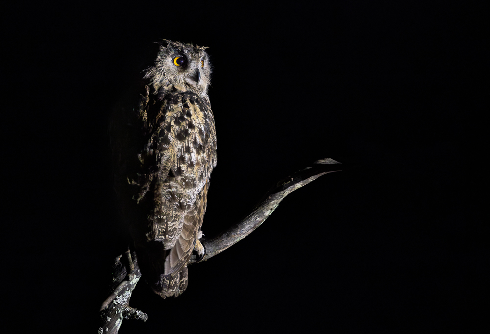 For the duration of this extension, we were based near the small town of Muhos. We photographed exclusively from private hides dedicated to the Golden Eagle and Eagle Owl. A typical day saw us in the hides early after breakfast for the eagle and late into the evening for the Eagle Owl. As the Eagle Owl is most active at night, all of the photography of this unique bird is accomplished with pre-fixed lighting. Whilst this is a set-up scene, there is, of course, no guarantee that an owl will come to the planned location. Fortunately, we did not have to wait too long before the Eagle Owl put on a show for us.