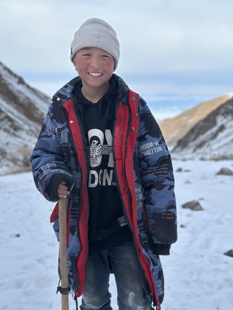 On our last day we also spotted a wolf high on top of a distant snow covered mountain – unfortunately too far to photograph, but absolutely wonderful to see and experience. This was my first encounter with a wolf in Mongolia. We also had some superb cultural experiences and opportunities and although people photography is not my thing, I could not resist the chance to photograph one of our trackers young kids before he set off into the mountains to shepard the sheep and goats.