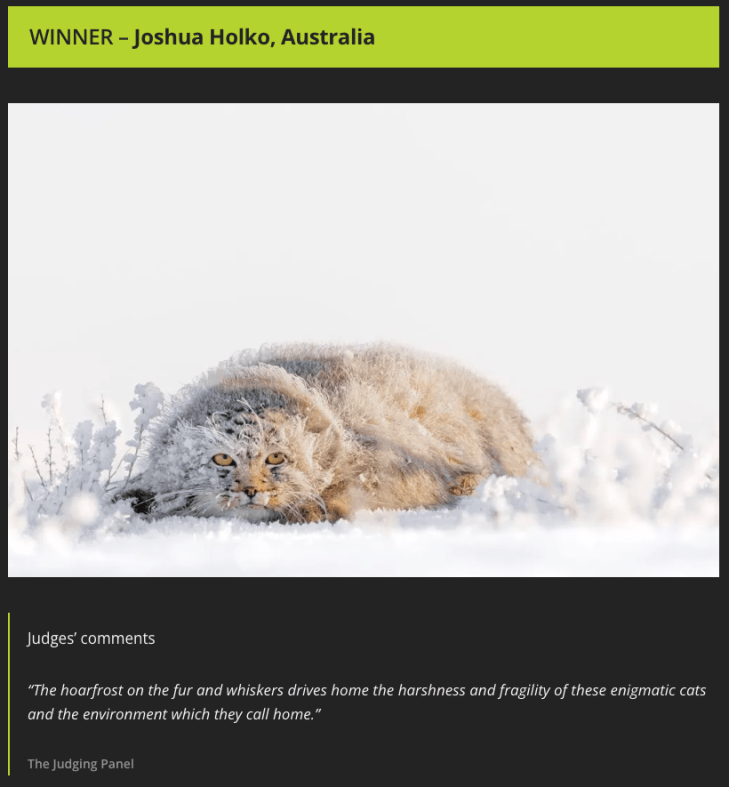 The Travel Photographer of the Year exhibition at the Banbury Museum and Gallery will be open from the 29th of March until the 7th of July. The exhibition includes my winning photograph of the Pallas Cat in Mongolia, printed by Genesis Imaging. Due to my travel schedule I will unfortunately be unable to attend this year – but please drop me a note if you stop past with your thoughts on the exhibition. Bookings are essential and can be made online HERE.