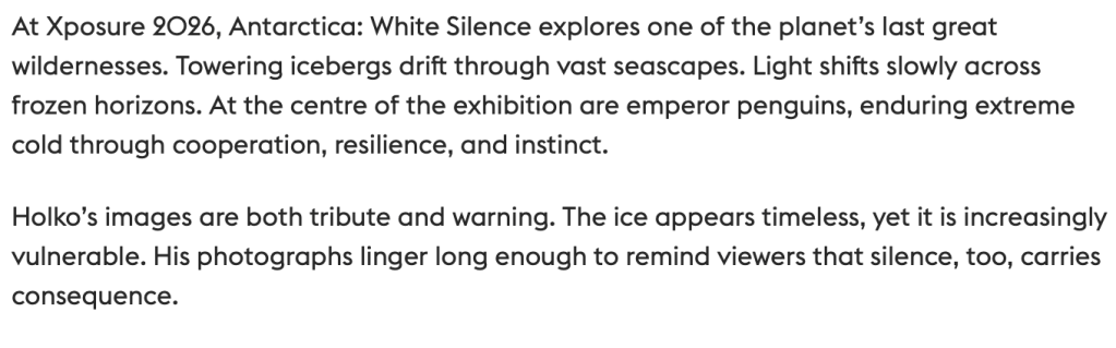 The Xposure photography festival is kicking off in Sharjah (near Dubai) on the 29th of January this year, 2026. As part of the festival, I will be exhibiting a curated collection of photographs from my expeditions to Antarctica, titled White Silence.