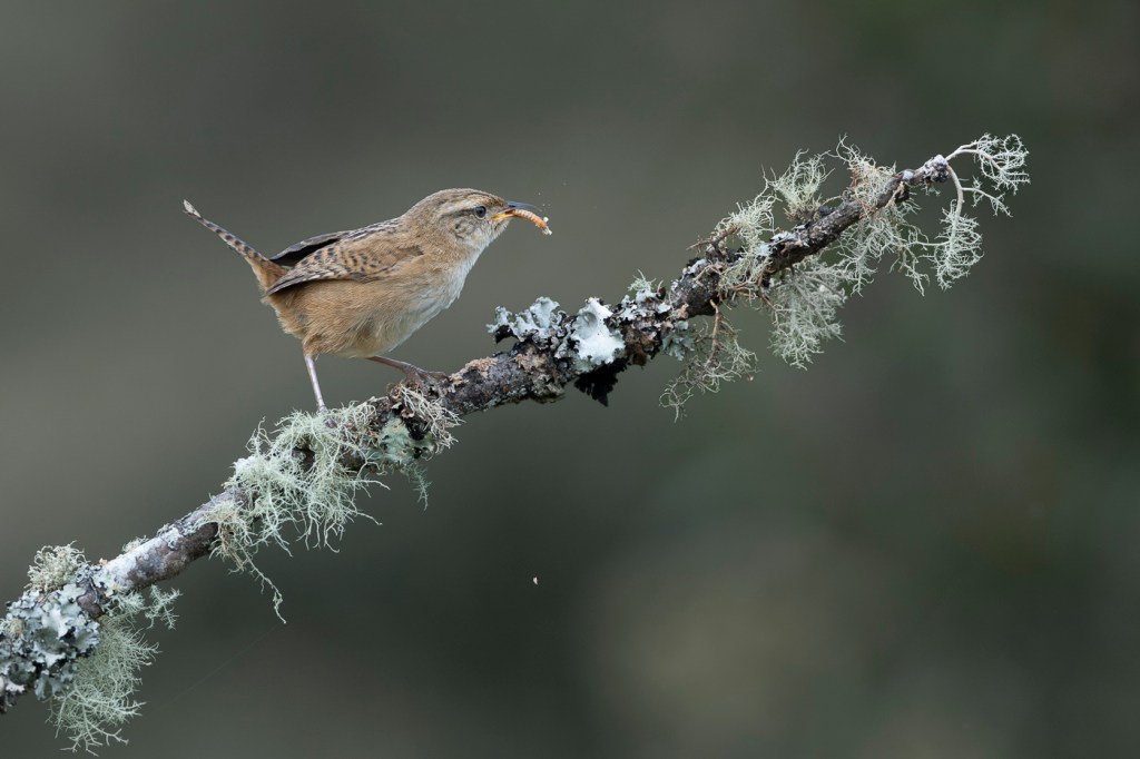One of my favourite photographs from my recent workshop in Colombia (Read the Trip Report) is of a small Grass Wren perched on a lichen-covered branch, having just caught its morning breakfast. Shot with the Canon EOS R1 and the RF 600mm F4L IS USM handheld, this was one of those photographs where moving just a few inches either side would have destroyed the clean background and bokeh. It was also a photograph I had to react quickly to, as the Wren was moving fast and flew off the perch just a second after catching breakfast. I also very much appreciate the colour tonalities of this photograph, the limited colour palette, and the decisive moment.