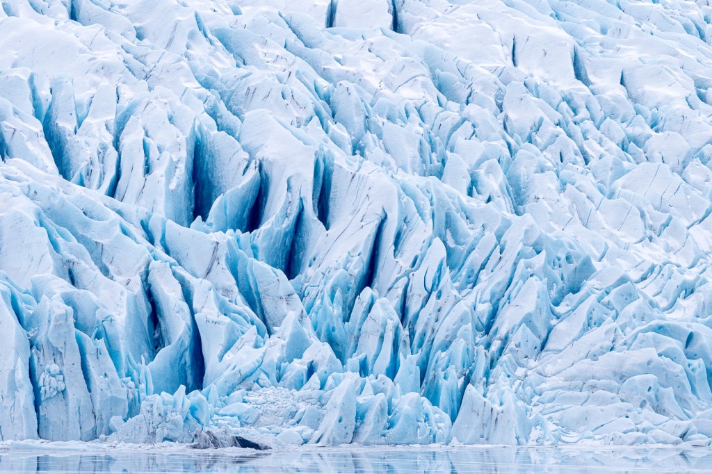 We also photographed the iconic sea stacks, which this area is known for. From Vik, we continued east to Jokulsarlon (the glacial lagoon), where we photographed ice on the black-sand beach and icebergs in the lagoon. We also visited nearby Fjallsárlón, which I always prefer for its glacial landscape. Crowds are usually much less at the smaller lagoon, and there are often icebergs frozen in place at this time of the year.