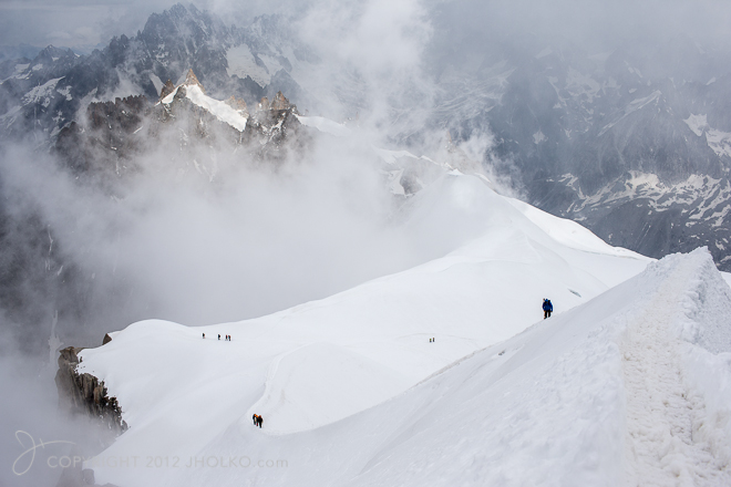 With a day free in Chamonix before heading for Venice, I jumped at the opportunity to take the two cable cars up to the Aiguille Du Midi at just over 12,600 feet for some mountaineering photography.