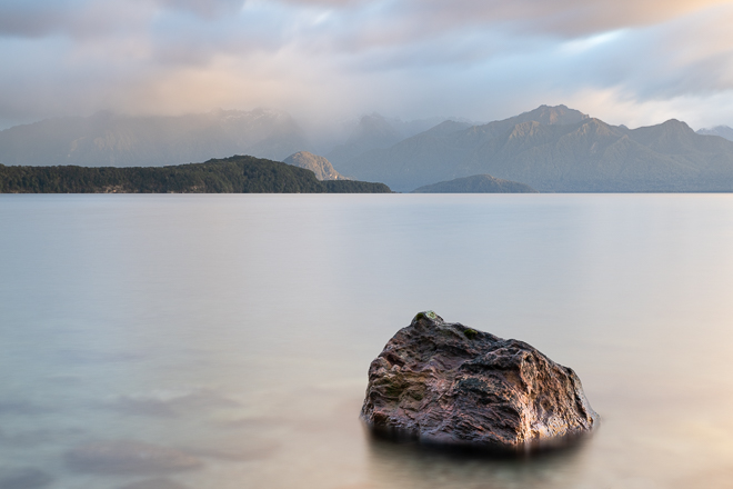 We arrive at Te Anau at 3:00 pm sharp, take a break and we head out at 5 to a quick photoshoot. It’s a bit overcast so take a different approach to photographing sunsets and we go for a (4 minute) long exposure. with the help of Joshua and Phillip, I’m able to capture this photo.