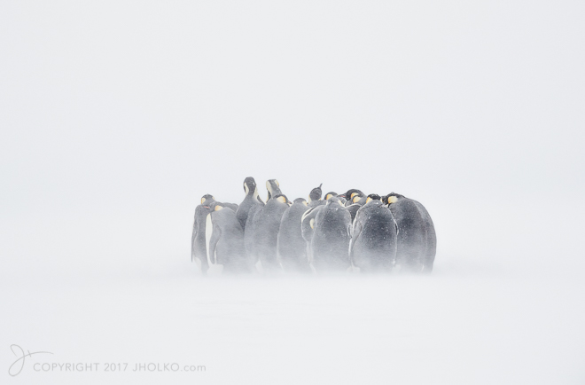 The photograph of the month for 2017 comes from my recent expedition to the Emperor Penguins on the sea ice at Gould Bay in Antarctica (Read the Trip Report). This particular image is very evocative for me of the life the Emperor Penguins lead out on the sea ice. The blowing snow that surrounds the huddled penguins really bring this photograph to life.