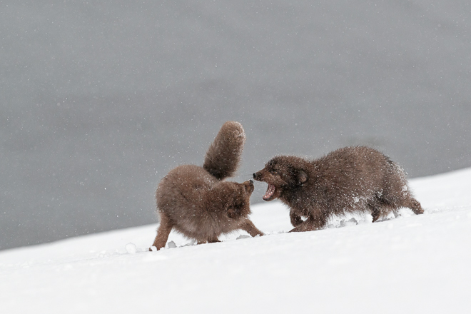 The photograph of the month for February 2022 comes from my 2019 expedition to Iceland to photograph Arctic Fox in Winter. This rare moment of two blue-morph Arctic foxes interacting and playing/fighting in the snow was one of the many wonderful encounters we experienced during our stay in the Nature reserve. Arctic Foxes are common in this area as they are protected from hunting. Arctic Foxes are typically solitary animals; interactions are rare and usually only occur during the mating season. Even then, the coming together of two foxes is usually only a brief moment at best.