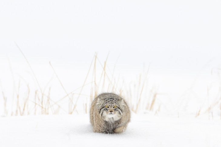 The photograph of the month for April 2023 comes from my recent winter expedition to the Steppe region of Mongolia to find and photograph the stunningly beautiful Pallas Cat. 2023 was a fantastic year for snow conditions and Pallas Cats in Mongolia, and this photograph is one of my favourites from the year so far. With the cat coming directly toward the camera with one paw slightly raised, suggesting movement, and the cat’s gaze firmly fixed on my position, there is a perfect symmetry to the shot with the cat centred in the frame. The soft grasses in the background help give environmental context, while the fresh snow in front of the cat keeps the scene clean and uncluttered. The photograph was taken with the Canon EOS R3 with the Canon RF 600mm f4L IS lens. It was a deliberate creative decision to send the background grasses soft with a shallow depth of field to help isolate the cat from the background.