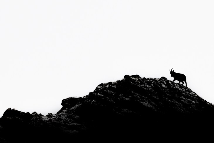 This is actually a full-colour photograph (no desaturation) backlit of a Mongolian Ibex high in the Altai mountains in Mongolia. It was done in camera with just a black-and-white point tweak in post-production. Shot with the Canon EOS R3 with a Canon RF 600mm f4L IS Lens. Sometimes you don’t need to work hard to make a great image. This was shot sitting down, drinking a cup of coffee and resting against some rocks when the Ibex appeared at the top of the mountain. I just saw the opportunity, picked up the camera, set the exposure and made the shot – serendipity.