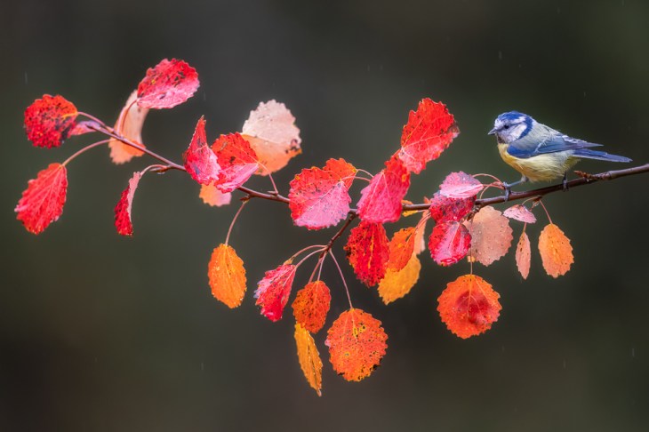 The photograph of the month for December 2023 comes from my recent Finland extension (Read the Trip Report) and is of a Blue Tit on an Autumn branch during a light rain shower. This photograph was set up using a hide, and the specially chosen branch (for its fiery colour) was deliberately placed next to a nearby feeder station. It was then simply a matter of patience to wait for the bird to stage onto the branch. The branch location was chosen with great care for the dark, clean background to help emphasise the colour in the leaves and colour of the bird.