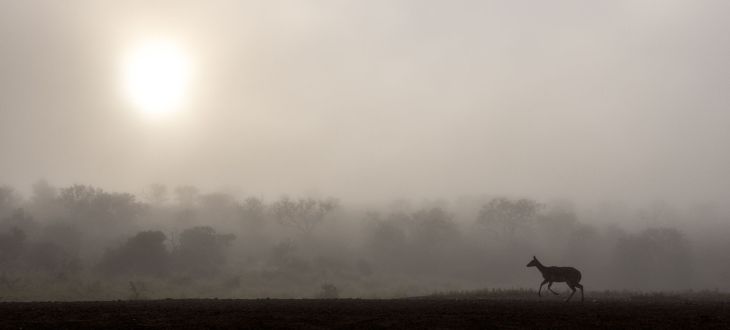 The photograph of the month for 2026 comes from one of my previous expeditions to Zululand in South Africa. The chance encounter for this photograph was pure serendipity, as I had been sitting in an overnight hide waiting for Elephants or potentially a Lion or Leopard to come past for an evening drink at the watering hole; none of which ultimately eventuated on that evening. With the sun beginning to rise and a thick fog blanketing the landscape, I was hopeful there would be an opportunity to catch something before the fog burned off for the day. As luck would have it, I was just about to pack up when this Impala ran through the frame. The opportunity existed for just the briefest of moments before the Impala was again out of frame behind the ridge. It was a timely reminder to both always be ready and to expect the unexpected. It was also a prime example of having exposure tested and set, just in case action was needed at the spur of the moment (as in this case). Shot with the 70-200mm f2.8, this was an obvious candidate for a panoramic image in post production and became my favourite from this visit to South Africa.
