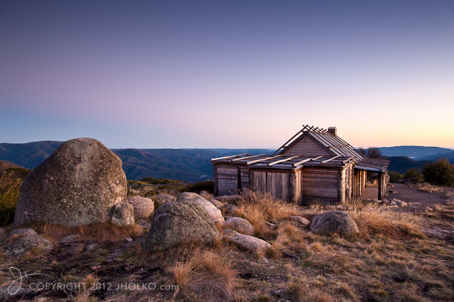 This photograph was taken just before dawn at Craig’s Hut at the top of Mount Sterling in the Victorian High Country. I chose to shoot this with a 24mm wide angle lens to help show the expanse and exposure of the location. Craig’s Hut was one of the locations for the Man from Snowy River.