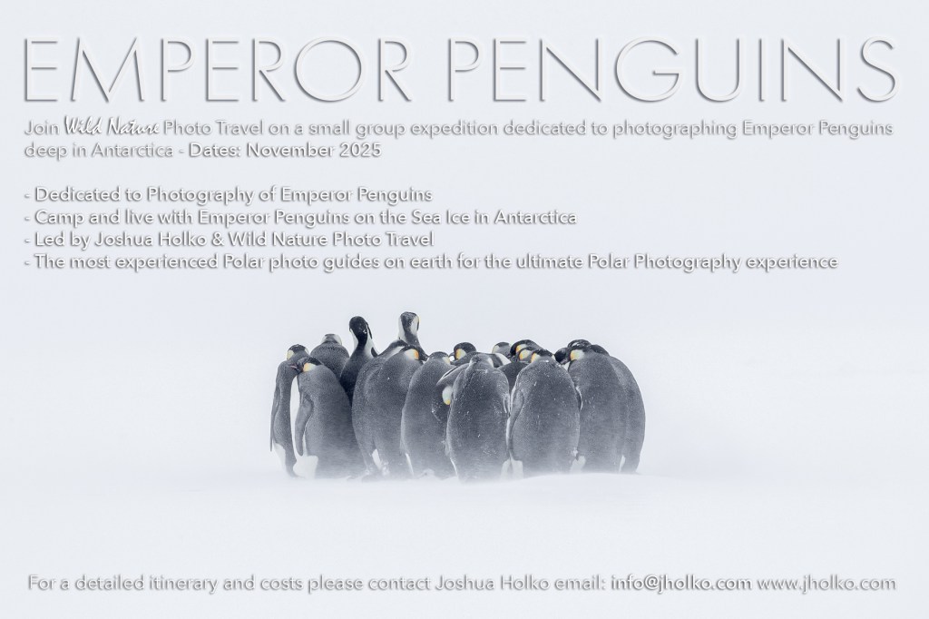 I will return to the world’s most southerly Emperor penguin colony in early November next year (2025) to lead another small group of photographers on this incredible expedition. If you have ever wanted to photograph the world’s largest and most elegant, photogenic penguin, this is the expedition for you. Limited places are still available on this extraordinary expedition. Please contact me for more details.